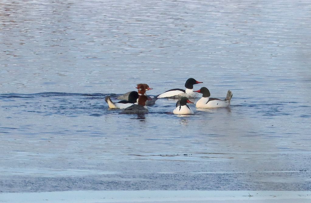 Canada Goose (5); Mallard (86); Hooded Merganser (10); Common Merganser (78: there was a lot displaying going on and we ended up watching one group for 20 minutes. See