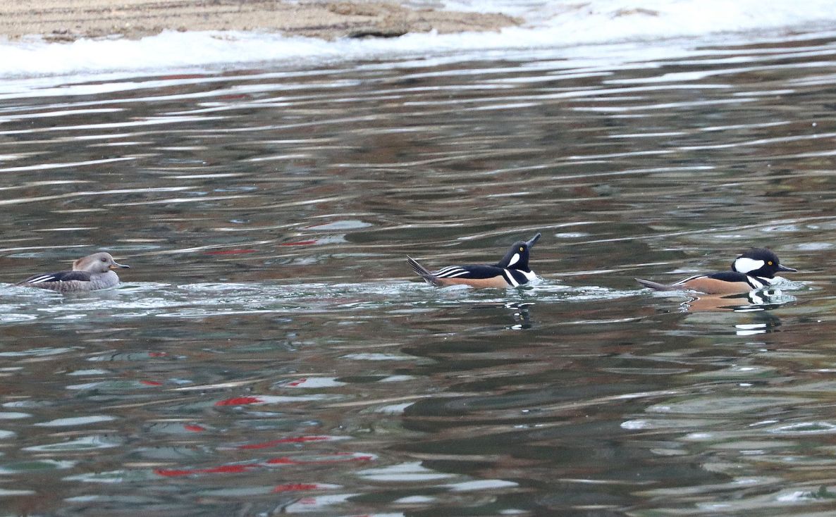 Mute Swan (2); Canada Goose (31); Mallard (13); Ring-necked Duck (pair); Hooded Merganser (9); Common Merganser (10); Red-shouldered Hawk (1);