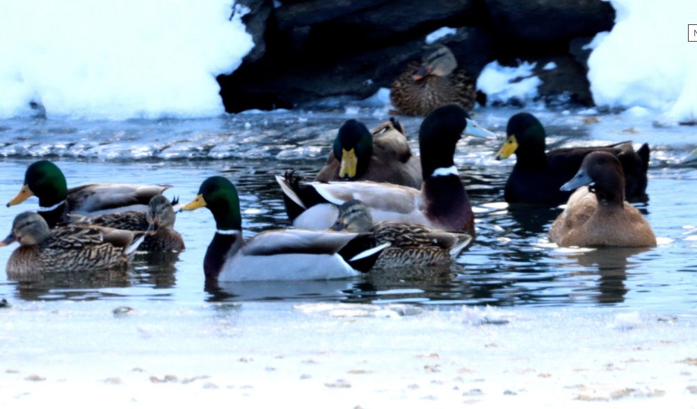 Highlights: A Black Duck (3); Mallard (80: including 45+ in tiny open spot between Lake Quabog and Quacumquasit along with a few “joke” (domestic) ducks. They must be being fed here or near here. See