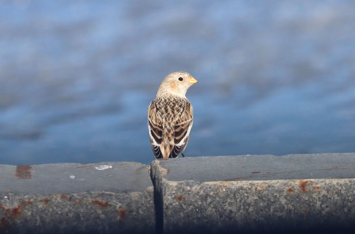 North Dike (gate 36, 37) we spotted 5 Common Loons, 30+ Horned Larks on the Dike, an adult bald eagle flying over us 2 Common Goldeneyes, 8 Hooded Mergansers, 7 Buffleheads and about a dozen Northern Juncos. No Snow Buntings to be seen. At Gate 39 a huge flock of Canada Geese (800 est) 2 more Loons and 2 Ring-billed Gulls.