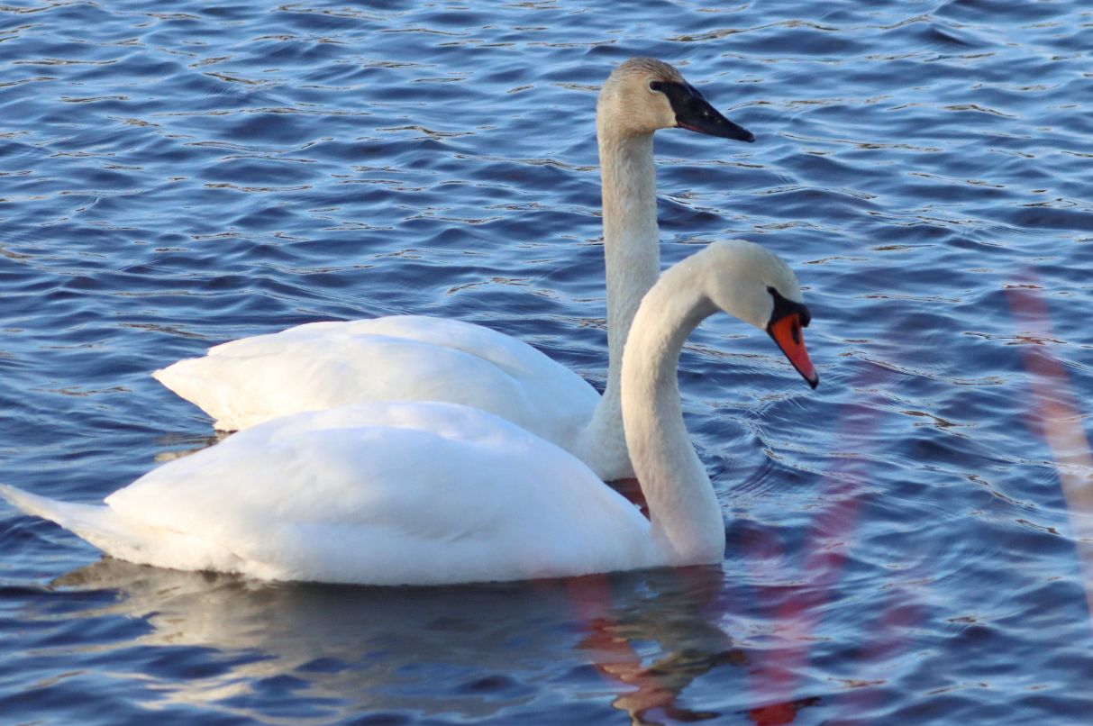 Lake Ripple, Grafton: TRUMPETER SWAN (1); Mute Swan (2: see