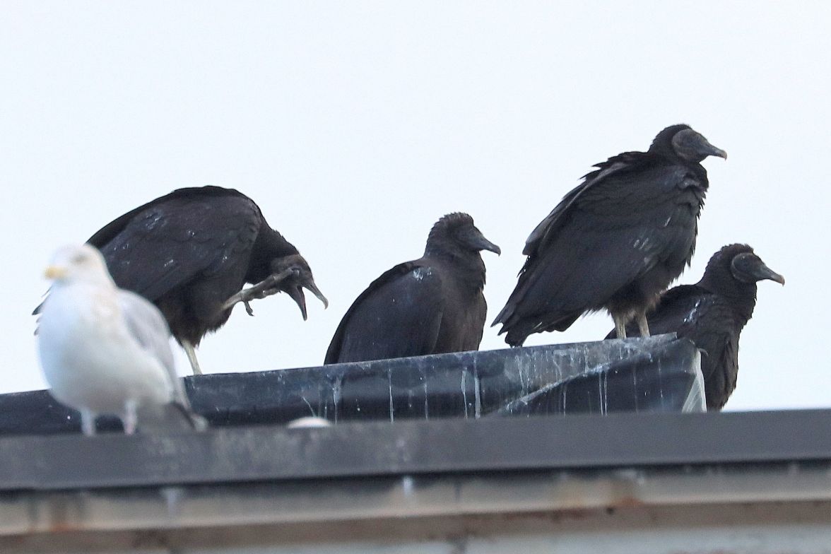 This morning we birded around the small towns of BLACKSTONE AND MILLVILLE that form the southeast corner of Worcester County. Bird numbers were, for the most part, down. Part of the reason may be that the wild food crop was very poor. Gull numbers were also way down. These towns are very built up with just a few woodlots and �preserved� areas. So, it was depressing to find today that a number of those remaining woodlots are now being built on. Water features include a long stretch of the Blackstone River and one good sized, but difficult to access, pond. Mute Swan (3); Canada Goose (27); Mallard (68); Hooded Merganser (3); Common Merganser (5); Black Vulture (6); Turkey Vulture (29: nb: early morning in the cold months, look for vultures perched on the roofs of houses along the Blackstone-Woonsocket border. They typically perch on chimneys to stay warm. But be discreet! Home owners are not too fond of their houses being roosts for carrion eating birds. We had 1 Black Vulture actually sitting on the small landing right against the front door of 1 house. If they opened the door they would have to step over the vulture to leave the house. After morning, the vultures disperse throughout, most flying north of the area and also east. ); Red-tailed Hawk (3); Ring-billed Gull (5); Herring Gull (15); Red-bellied Woodpecker (4); Downy Woodpecker (3); Hairy Woodpecker (1); N Flicker (3).