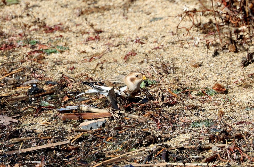 This afternoon we headed to Muschopauge Rd in Rutland. Approaching by Millbrook, we found a single cooperative Snow Bunting right on the side of the road by the field. Other than that, we had almost nothing further on except several hundred starlings and 1 somewhat pale Red-tailed Hawk. There were no geese at Worcester Memorial Cemetery in Paxton and nothing but crows from Rt.56 to the airport. Further along, on Coes Pond and Reservoir (Worcester) there were a handful of geese, 2 swans and 1 Common Merganser. BTW: LOTS of tree damage in Rutland and Paxton, mostly very large branches, but also entire trees.