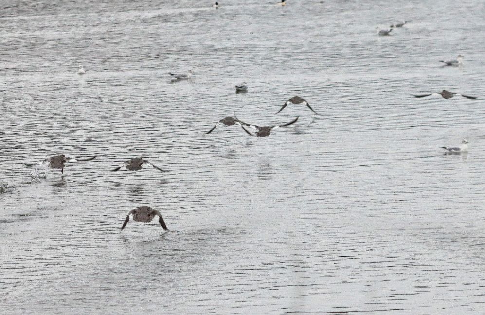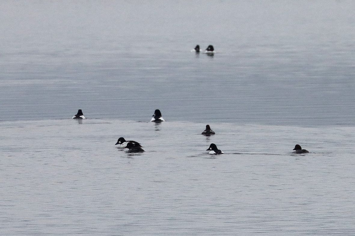a flock of 13 Common Goldeneye not too far from shore. Nothing else seen on the water from several