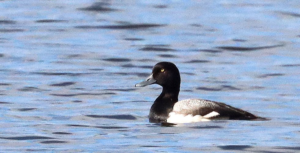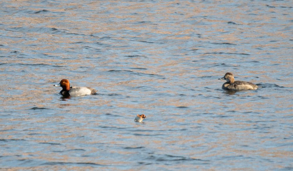Common Loon (4: we watched one struggling to get down a good-sized bass); Canada Goose (57); Mute Swan (2); Mallard (1); Greater Scaup/scaup sp. (39); Lesser Scaup (3); Ring-necked Duck (9); Bufflehead (16); Common Goldeneye (63); Hooded Merganser (10); Common Merganser I2); Red-tailed Hawk (2); Bald Eagle (1ad); Ring-billed Gull (18); Herring Gull (114); Great Black-backed Gull (33).