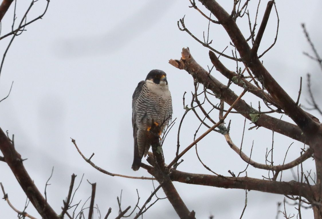 On the way to the IBA, along West Boylston Street, we had a perched Peregrine tearing some prey item apart being attacked by an immature accipiter that we id’d initially as a Cooper’s, then, looking at photos, thought female Sharp-shinned. (see