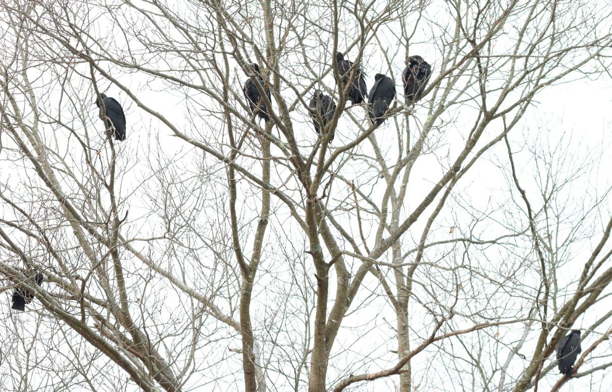 Highlights: Great Blue Heron (1); Canada Goose (56); Mute Swan (4); Mallard (7); Black Vulture (52); Turkey Vulture (81); Red-tailed Hawk (1); Wild Turkey (22); Ring-billed Gull (21); Herring Gull (7); N Flicker (7); Blue Jay (79); C Raven (1); Carolina Wren (14); E Bluebird (3); Gray Catbird (1); C Yellowthroat (1); Field Sparrow (1); Song Sparrow (24); White-throated Sparrow (17); Dark-eyed Junco 149); A Goldfinch (45).