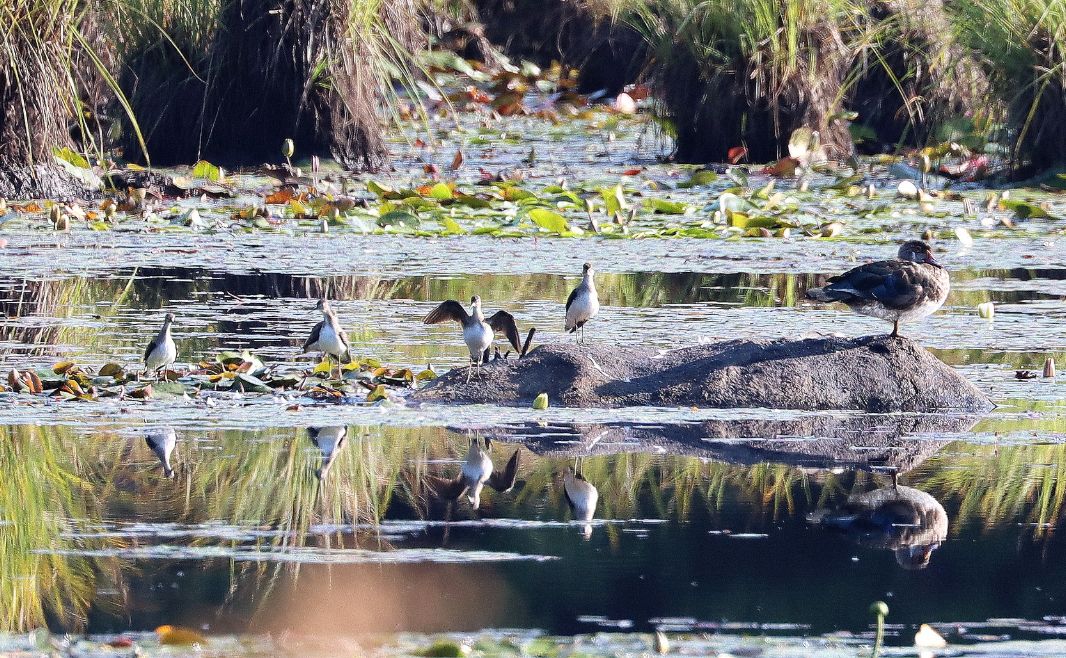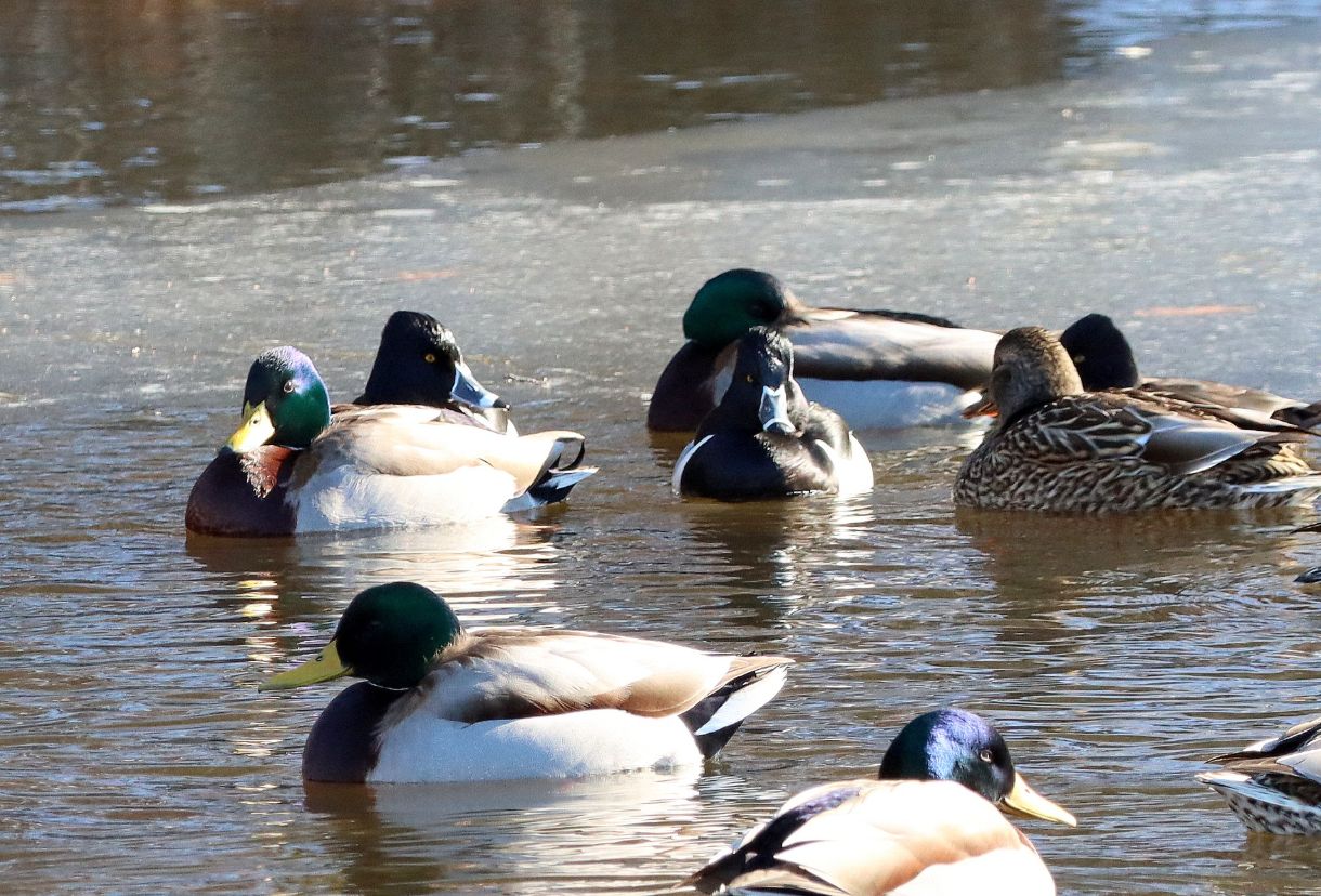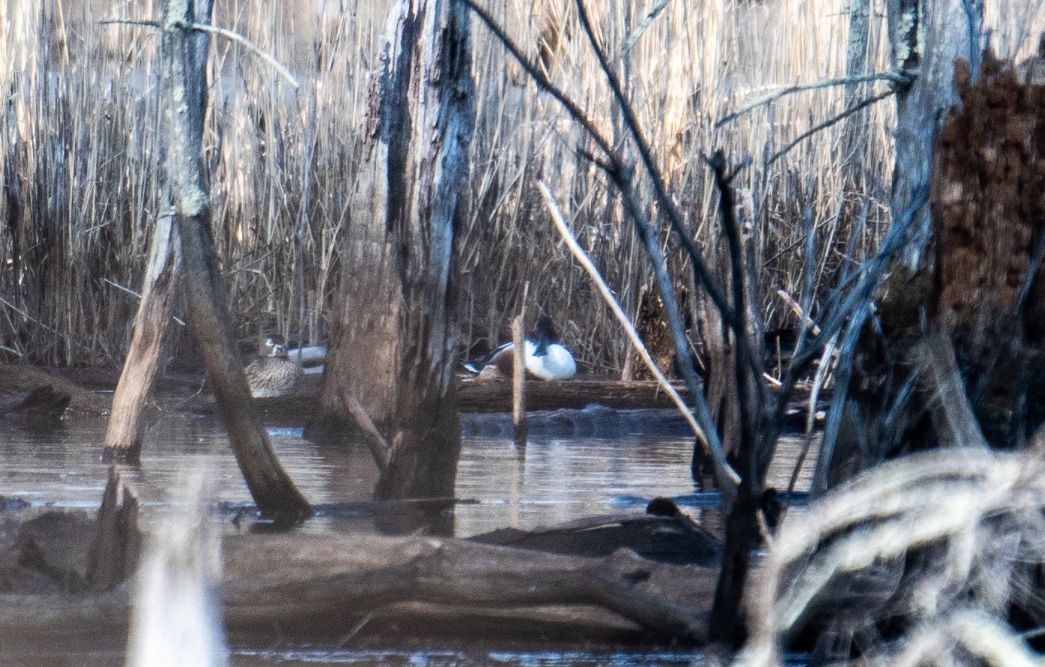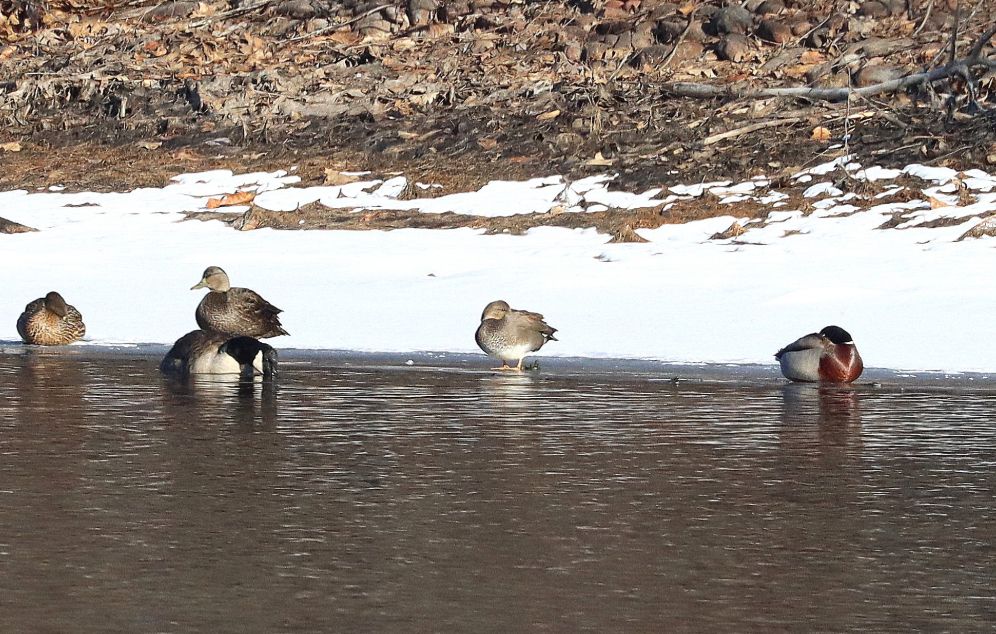 Mute Swan (2); Canada Goose (31); Mallard (13); Ring-necked Duck (pair); Hooded Merganser (9); Common Merganser (10); Red-shouldered Hawk (1);
