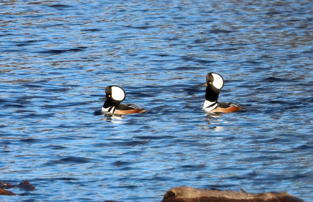 Common Loon (3); Double-crested Cormorant (1); Great Blue Heron (1); Canada Goose (139); Mute Swan (6); Mallard (65); Greater Scaup/”scaup sp.”(162); Lesser Scaup (4); Bufflehead (39); Common Goldeneye (2m); Hooded Merganser (31); Common Merganser (3); Red-tailed Hawk (1); Belted Kingfisher (2); Yellow-bellied Sapsucker (1); Pileated Woodpecker (1).