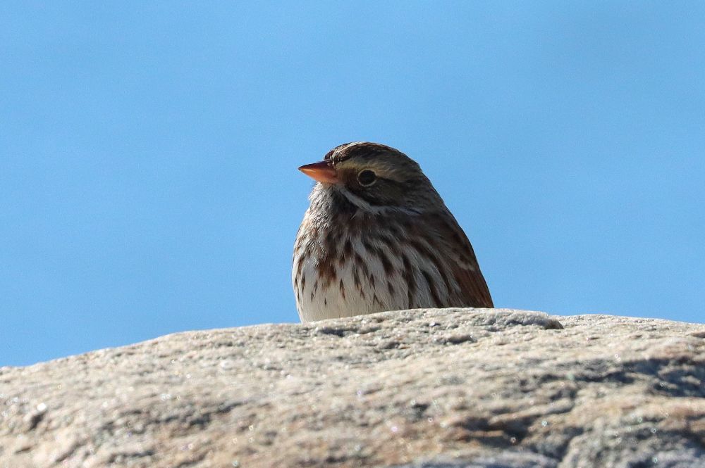 Landbirding was slow except at the East Brookfield Flats. Highlights: N Flicker (1); Fish Crow (2); C Raven (2); Horned Lark (130+: we had this huge flock along the back edge of the fields. It flew around several times and then disappeared, either to some part not visible, or left entirely); Lapland Longspur (1); Snow Bunting (flock of 60+: a very nervous flock, they would land and then fly up in a few seconds. They landed close to us a number of times and I was able to get decent scope views, but they were very restless); Tree Sparrow (18); Red-winged Blackbird (1m); Common Grackle (1).