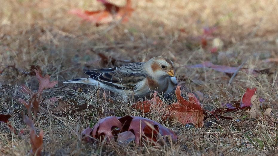 In the midst of birding Wachusett Reservoir IBA, we headed up to the Fitchburg Airport to try for the reported Chestnut-collared Longspur. When we got to airport, as we were driving in the short entrance road, a good group of birders had the longspur among some larks in the parking area (actually on the left side of the entrance road. There it stayed for some minutes but eventually flew with the larks out to the runway. There it was visible for a bit, but then they all flew to the far side of the runway and out of sight and we left. The bird is still there but if you go be prepared to have to wait to get decent views. BTW: while we were there it was really snowing and there were some icy patches so take care walking with your scope.
