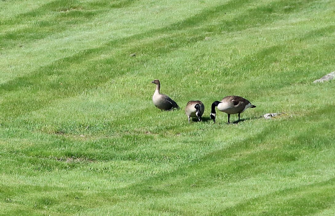 This morning we started at David Farmland in Sterling at c.7AM. No geese. We pulled in at a field opposite Rugg RD. Eventually we saw a modest flock of geese fly in from the east. Led by the Ross’ Goose! This group flew back and forth and over the corn maze area and eventually landed in the fields in front of us. Then hundreds of geese flew in in different sized flocks, all from the east, and all landed in the same fields. We left them there. (see Sheila’s photo of this diminutive goose). Where they all were coming from we are not sure. Dexter Drumlin? Coachlace Pond? Some other pond? (later in the morning Kevin Bourinot found the goose in South Meadow Pond).