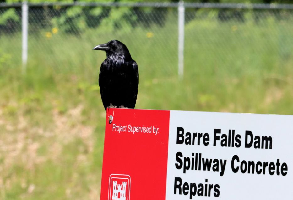 A Crow (18); [our best sighting of the day was of a crow. We were driving over the Quabog River when we spotted a crow flying down to mid-river and hitting the water like an Osprey. By the 4th dive, that crow came up with a good-sized herring in its bill. It took the fish to a over-hanging log and proceeded to chow down eating most of the fish. (see