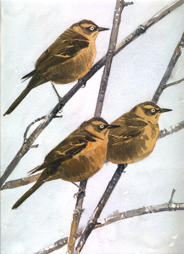 sparrow-many,song sparrow-3,r-w blackbird,common grackle-only 1,american